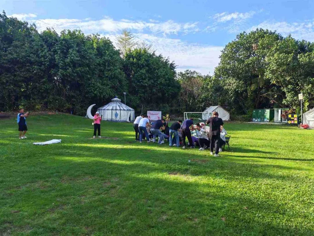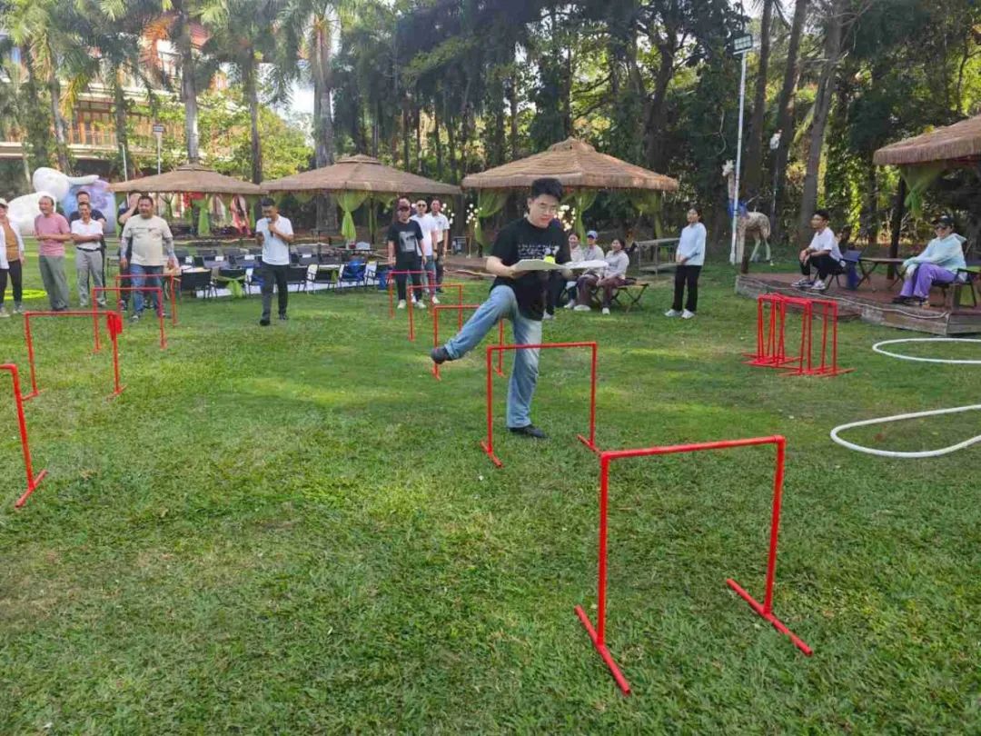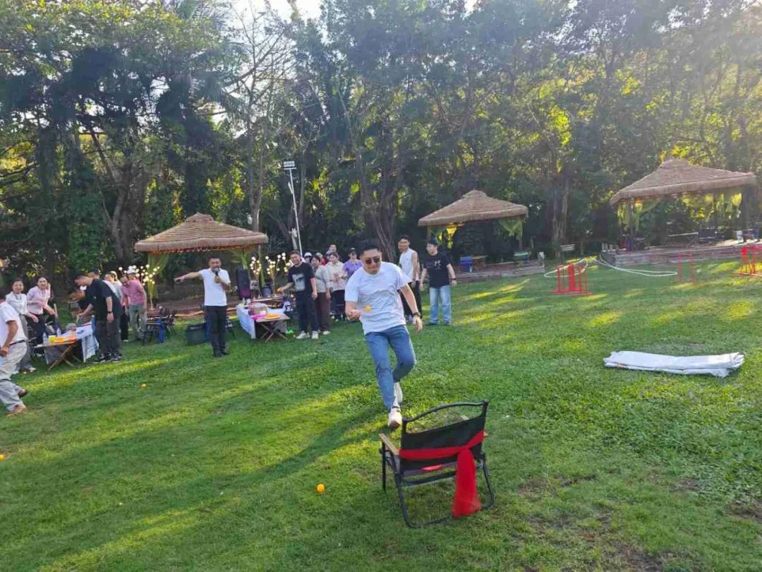 當日午后,全體員工滿懷期待地齊聚在團建活動場地?;顒右潦?,一系列妙趣橫生的暖場小游戲迅速點燃了現(xiàn)場的熱烈氛圍。在“四平八穩(wěn)”“筷子夾球”“草坪龍舟”“重走長征路”等游戲中,展現(xiàn)出了高度的團隊精神和競技熱情。這些小游戲不僅讓大家在輕松愉快的氛圍中迅速消除了工作中的疲憊與壓力,更讓大家深刻體會到了團隊協(xié)作的重要性,為后續(xù)的活動奠定了良好的基礎。